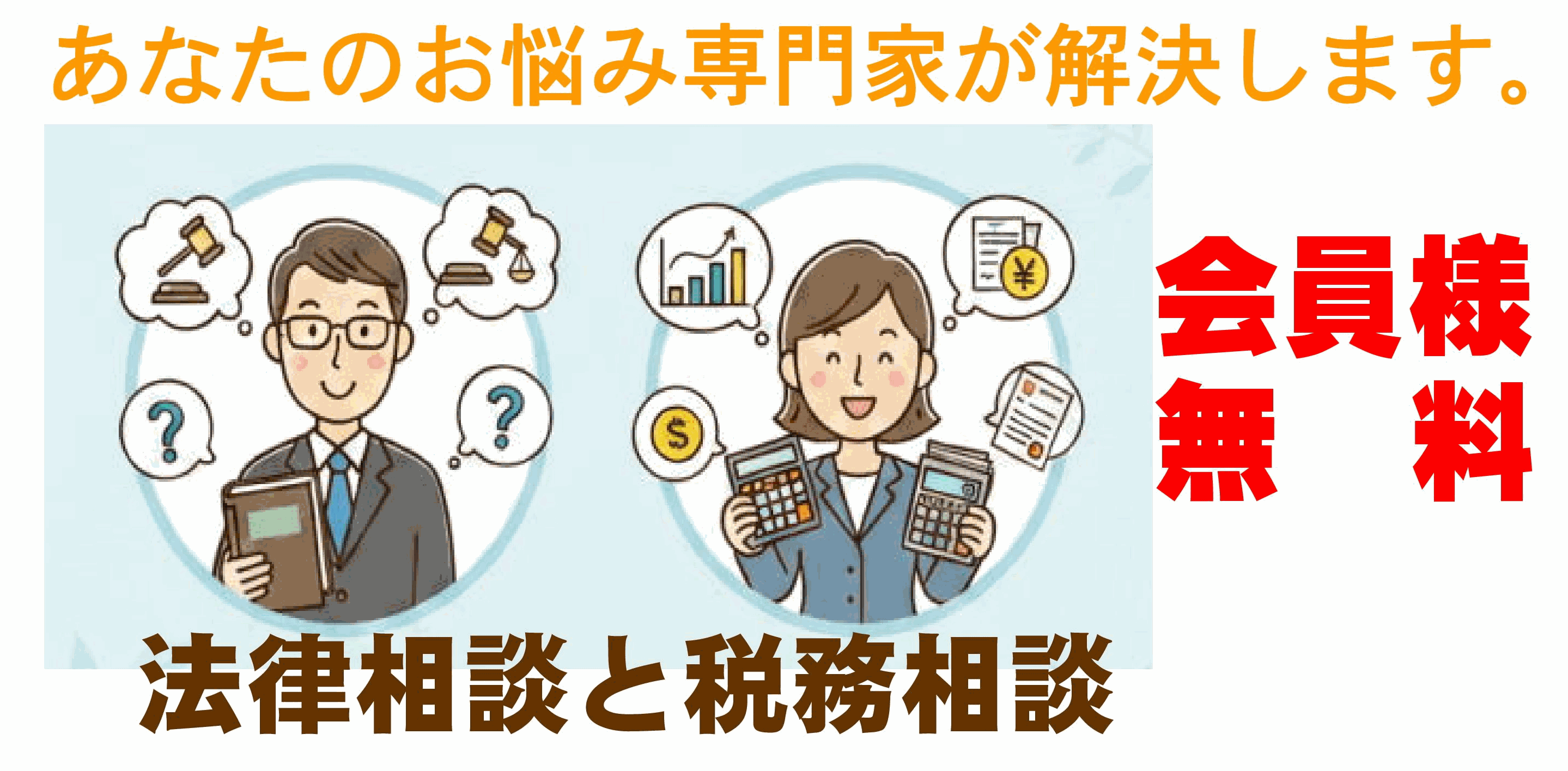 あなたのお悩み専門家が解決します。八尾納税協会の会員様には無料でご利用いただけるサービスです。ぜひご利用ください。